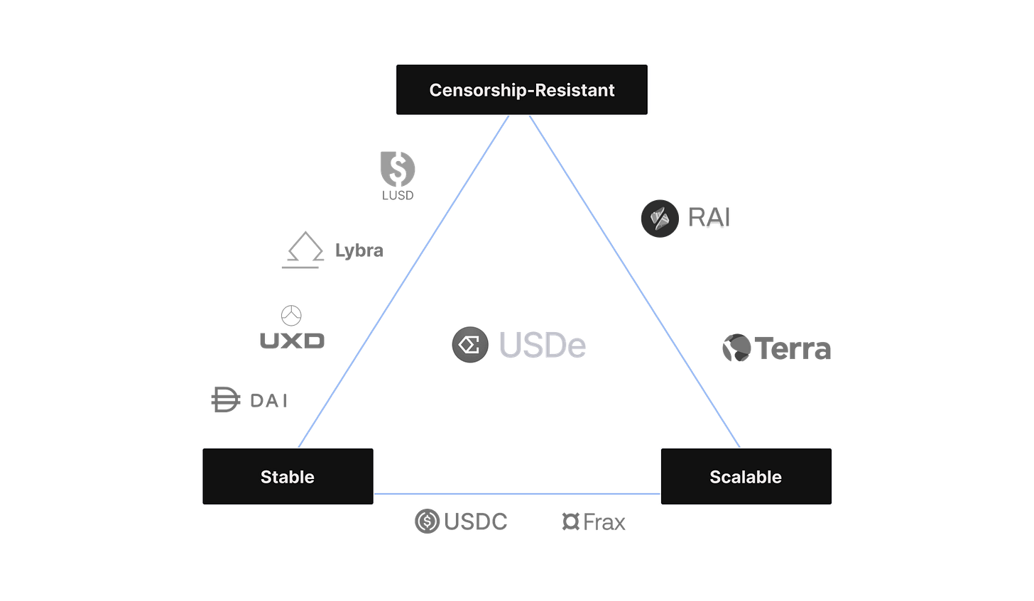 Ethena 是先前相當火熱的 perp-hedged stablecoin 協議,Ethena 會透過 BTC, ETH 現貨作為抵押品(足額抵押)的 delta-neutral position 創建合成穩定幣,他是一款 yield-bearing stablecoin,收益來源是交易所的資金費率收入。
