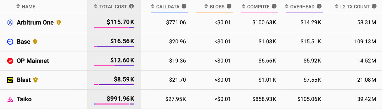 Taiko 身為第一個正式上線的 Based Rollup 所面臨的挑戰分享於上期的電子報中。值得注意的是 Taiko 相對於其他 Optimistic Rollup,它每個月支出的手續費成本高達 1M USD:
